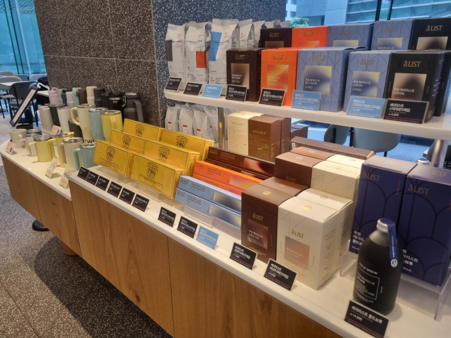 키오스크 앞쪽으로는 빵과 판매용 커피, 디저트 MD 상품들이 진열되어 있었는데,