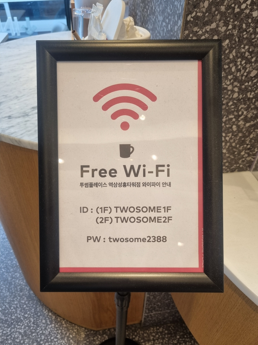 와이파이 비번 알고 가야 할 것 같아서 1층에서 사진 찍어왔는데,