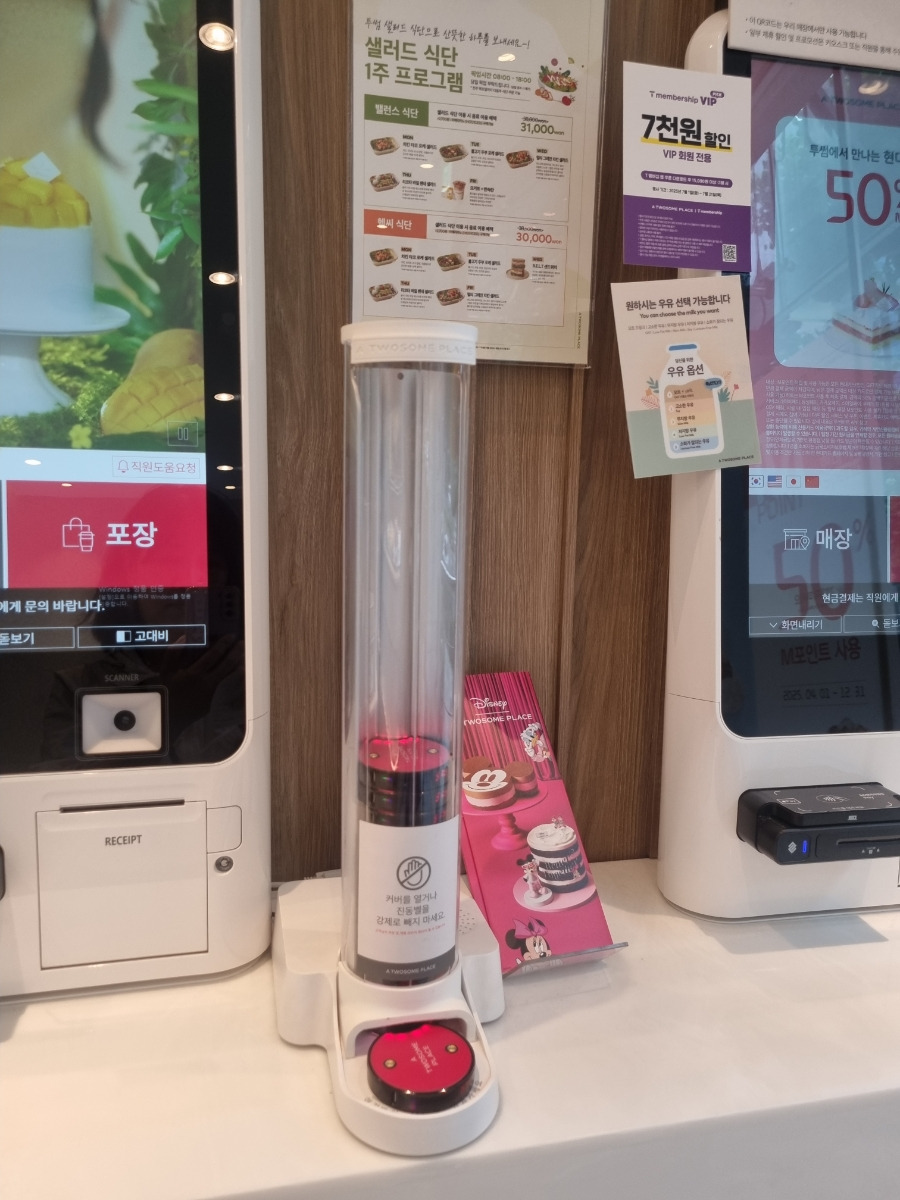 입구에서 오른쪽에 바로 키오스크가 있었슴. 키오스크 사이에 있는 진동벨은 진짜 귀엽더라... 🥰